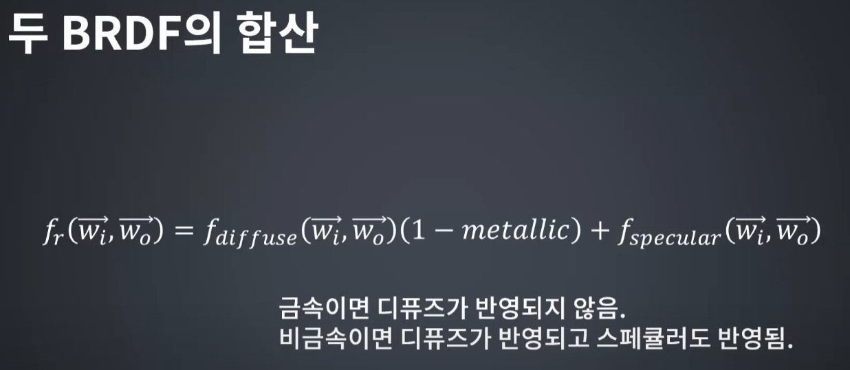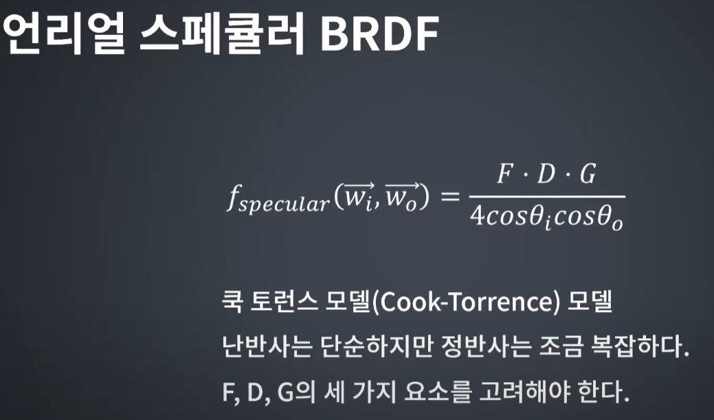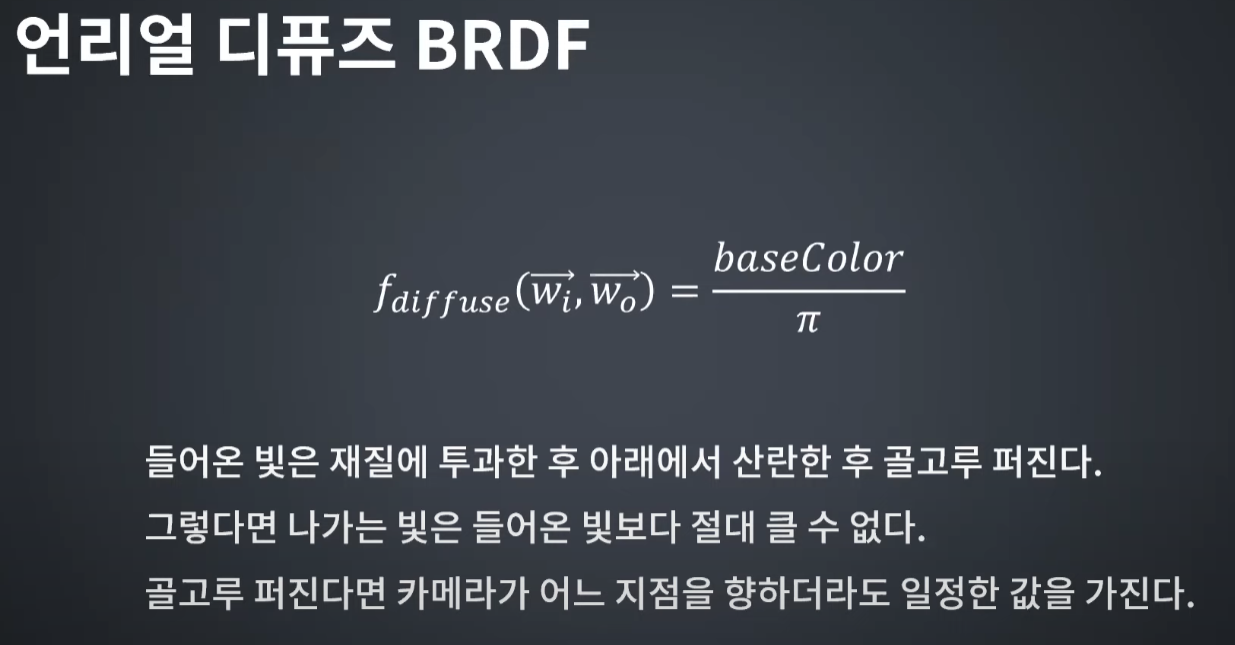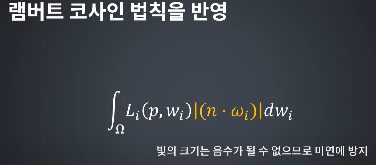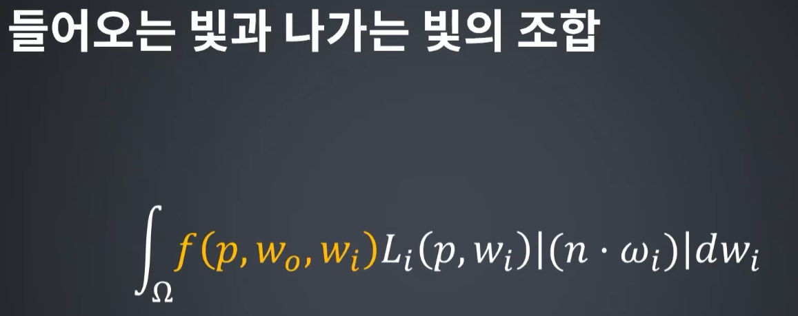 뭔가 렌더링 공식은 물리, 수학 공식과 같은 절대적인게 아니라 기존에 있던 물리, 수학 공식과 같은 이론을 기본으로 현실을 모방하려 하는 수학식 중에서 최선이다 싶은걸 (현재까지는) 써놓은거 같다