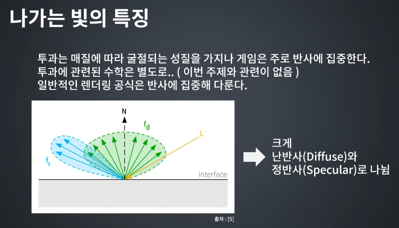 - 에너지보존 법칙 : 나가는 빛은 들어오는 빛보다 많을 수 없음