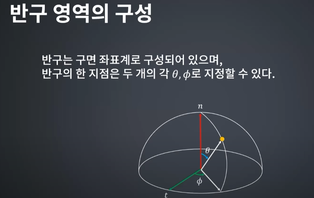 렌더링이 동작하는 영역은 반구 모델을 사용한다.(밑바닥 제외) 실제적으로 한 픽셀당 계산