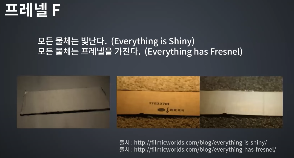 주의 : 잘못된 내용이 포함되어 있을 수 있으므로 이상하면 참고자료를 확인하세요. [ PBR 이란 무엇인가 ] Fresnel 이란? 프레넬 공식이란? 앞서 [ [ 번역 ] 모든 것은 프레넬을 가집니다 ] 와 [ Reflecti
