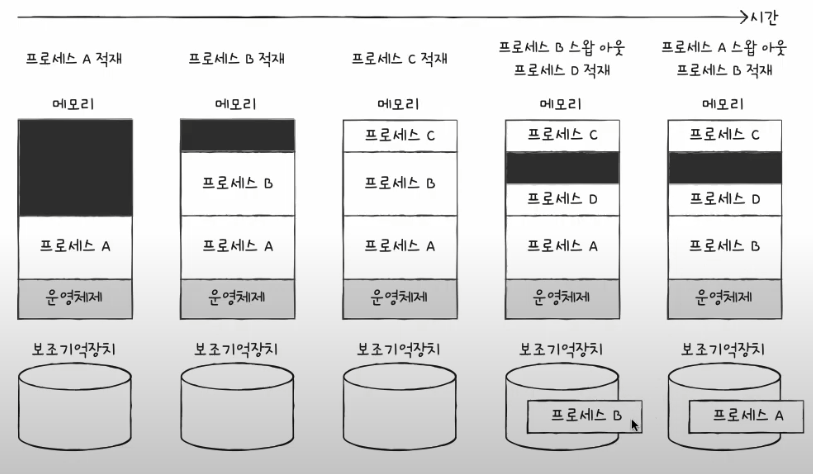 #요구 페이징(demand paging): 프로세스를 메모리에 적재할 때 처음부터 모든 패이지를 적재하지 않고 필요한 페이지만을 메모리에 적재하는 기법
